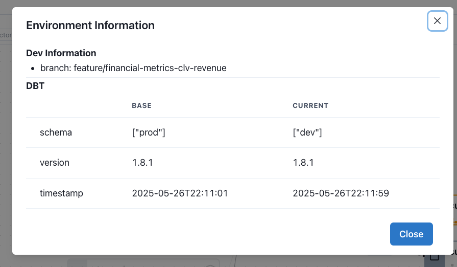 In dbt, an environment typically maps to a schema. To compare data results, separate schemas are required. Learn more in dbt environments.