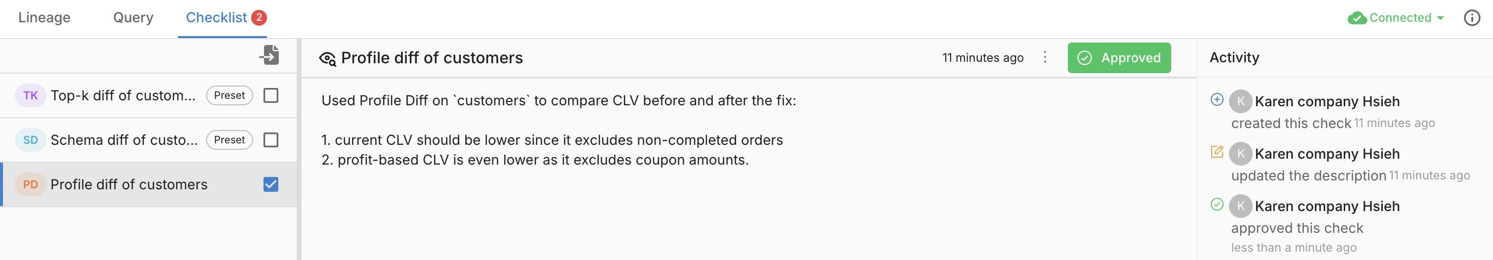 Goal: Review and approve data changes in PRs with confidence.
